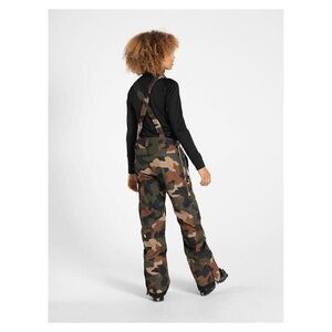 Armada snow bib with a stylish camouflage pattern. Features multiple pockets and adjustable straps.