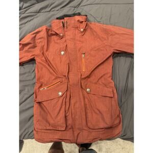 Stay warm and dry on the mountain with this Armada men’s ski/snowboard jacket in size Medium. Designed with durable waterproof fabric, multiple zippered pockets, and adjustable cuffs, this jacket is built for comfort and performance in winter conditions. Classic Armada quality and style in a standout red/orange color. Missing hood