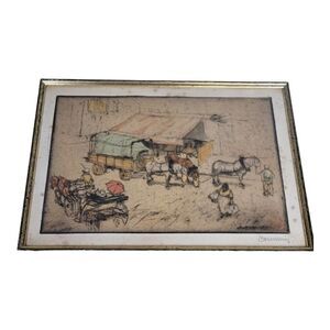 Armand Coussens Tinted Etching Print Signed Numbered Louvre French Covered Wagon.