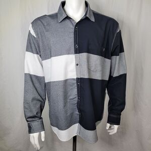 Armand Thiery Black, White & Gray Color Block Button Down Collared Shirt