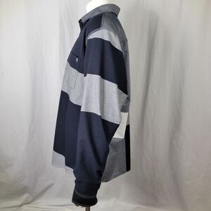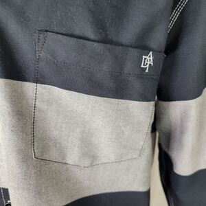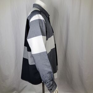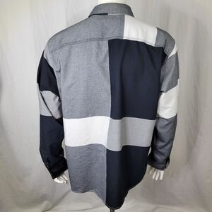 Black, gray and white color block button down shirt with a single breast pocket! Perfect for business or pleasure!