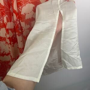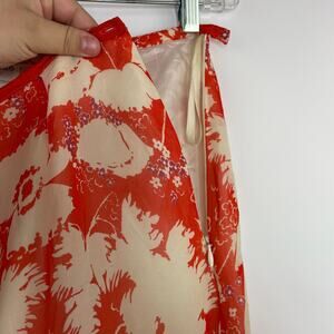 Armand Ventilo Floral Silk Midi Skirt orange red women's size 42