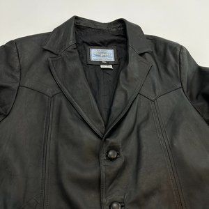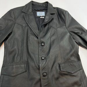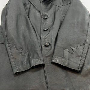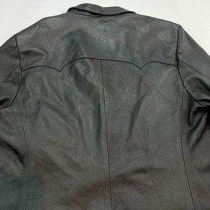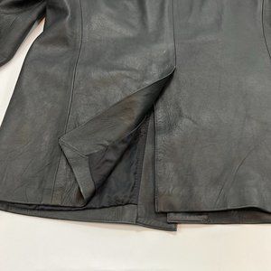 Armando Bueno Men's Black Leather Lined Jacket. Front Flap Pockets, Inside Pocket, Sleeve detail, Back vent. Leather-100% Lamb, Lining-100% Polyester