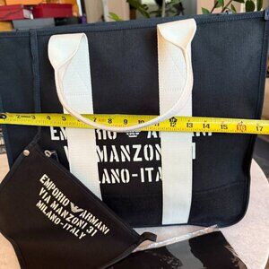 Armani Black Via Manzoni Black Fabric Tote Bag with removable pouch