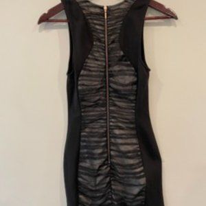 Armani dress. Black with mesh on the front and back overlying white-ish sating. Very breathable and comfortable and perfect for cocktail parties or special occasions