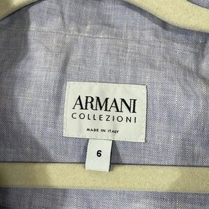 Armani Collection Collezioni Jacket Made In Italy Size 6. Light Blue With Armani Logo Trim. Silver Hardware. fabric Is Linen With A Lightweight Poly Coating. Adorable For Warmer Weather. Excellent Preowned Condition.