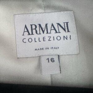 The Armani Collezione Vintage Black/White Cropped Blazer in Size 16 is a stylish and versatile piece for women. Made from an acrylic blend, this blazer features a classic black and white color scheme with button accents, exuding an Italian designer theme. Perfect for various occasions including travel, formal events, and business meetings, this blazer is lined and offers an asymmetrical closure for added flair. With pockets for practicality and a vintage aesthetic, this blazer is a timeless addition to any wardrobe, especially for those who appreciate high-end fashion with a touch of money.