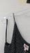 Chic black midi dress with white speckles. Features a stylish spaghetti strap design. Perfect for elegant occasions. missing beads mostly in the back 1 strap could use a few stitches