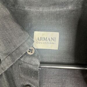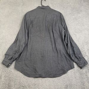 Armani Collezioni Black Flax Linen Button-Down Long Sleeve Shirt XL 16/41