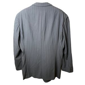 Black wool pinstripe suit coat by Armani Collezioni! This suit coat is in great pre-owned condition with minimal wear.