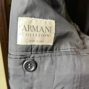 Grab this classic black wool pinstripe suit coat by Armani Collezioni and support a small, woman-owned business, The Kitten's Heel, where clothing has nine lives!
