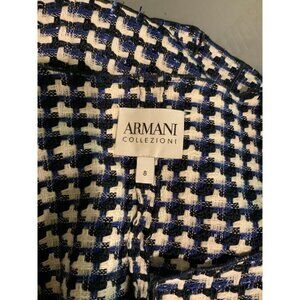 Armani Collezioni Blue & White Plaid Tweed Jacket, Size 8