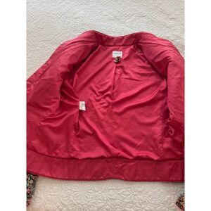 Absolutely stunning Armani Collezione boucle jacket. The coral color and bouclé fabric make it a standout piece, while the silk and wool materials ensure both comfort and style. Armani Collezioni is a luxury brand in the fashion industry, and this blazer is no exception, the attention to details in construction of the blazer is impeccable. Dress it up or down with pair of jeans. This blazer is a must-have for any fashion-forward woman. In like new condition, has been professionally dry cleaned.