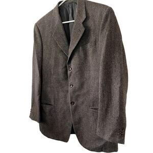 Armani Collezioni Brown Herringbone Stripe Blazer Mens Size EU 52R Wool Silk