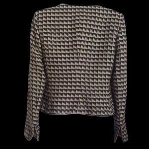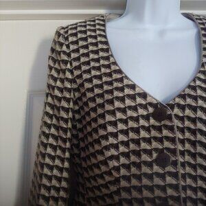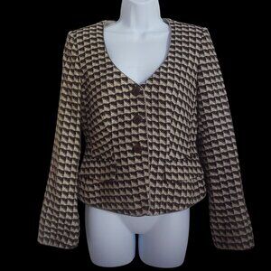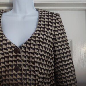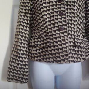 Made from 100% virgin wool and fully lined, this jacket has a geometric pattern in brown and cream color combination.