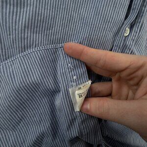Armani Collezioni Button Up Shirt Men Long Sleeve Striped Blue Size 16 Cotton