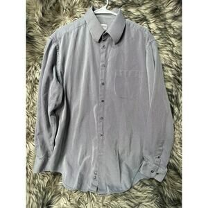 Armani Collezioni Grey Striped Men's Long Sleeve Button Up Shirt Size L