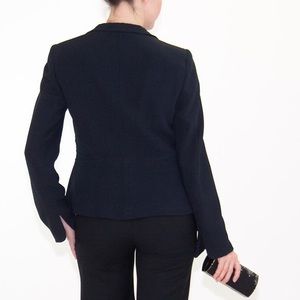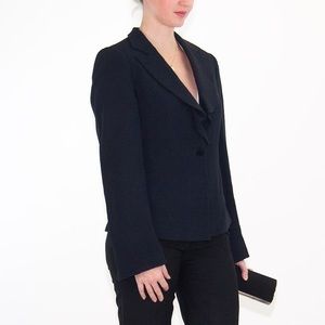 Navy Blue Armani Collezioni viscose & acetate One-Button Navy Ruffle Blazer