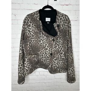 Armani Collezioni Leopard Print Band Collar Jacket Womens 14 Plus Double Faced
