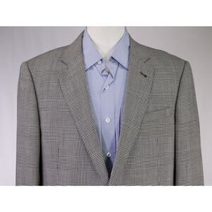 Armani Collezioni Mens Black White Plaid Wool 2-Btn Sportcoat Blazer 42L