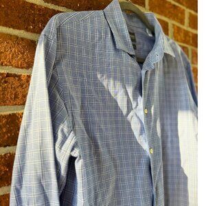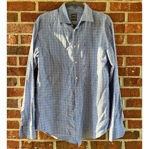 Armani Collezioni Men’s Slim Fit Dress Shirt Blue Check Long Sleeve Size 41/16