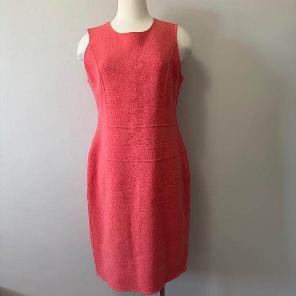 Chic pink midi dress. Features a sleeveless cut. Ideal for versatile styling.