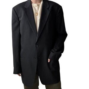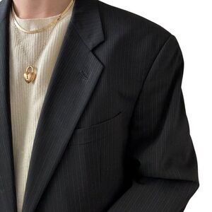 Armani Collezioni Saks Fifth Avenue Navy Blue Wool Pin Stripe Blazer Sport Coat