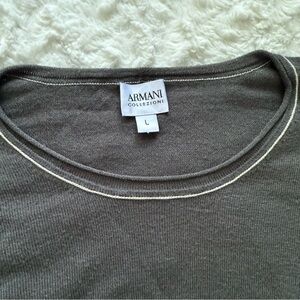 Armani Collezioni Silk Blend Long Sleeve Sweatshirt T-Shirt in Olive