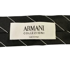 Armani Collezioni Silk Tie Black And White Stripe Men's Necktie Made in Itally