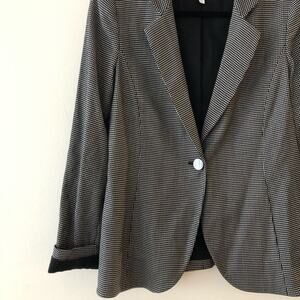 In good preowned condition. Lined. Black and white pattern. Wool blend.