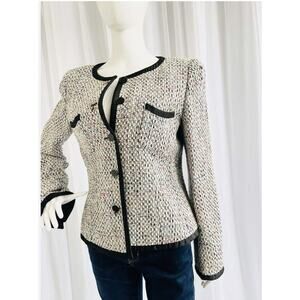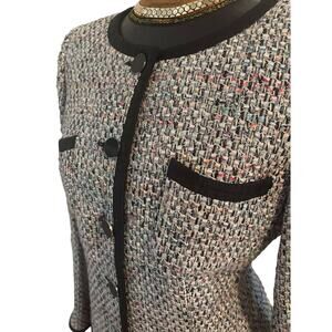 Armani Collezioni Single-Breasted Multicolor Tweed Black Trim Jacket US 10 IT 46