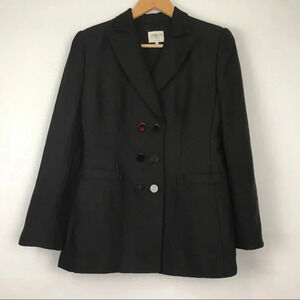 Armani Collezioni Textured Wool Silk Blazer Jacket. Women’s Size 8. Double breasted. Comes with extra buttons. There is a yellow mark on the tag. 75% Wool, 25% Silk. No Modeling or trades. E10