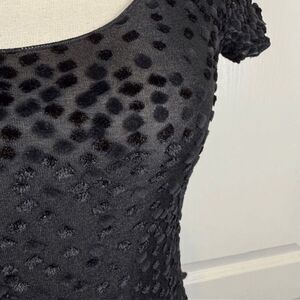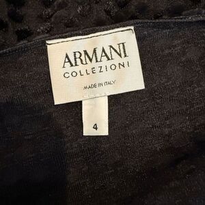 Armani Collezioni Velour Dot Textured Sheer Black T-shirt Baby Tee Fitted Size 4. Excellent condition. See photos for details and unstretched measurements. Shop my closet and bundle multiple items for discounts and one shipping fee!
