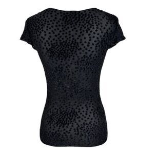 Armani Collezioni Velour Dot Textured Sheer Black T-shirt Baby Tee Fitted Size 4