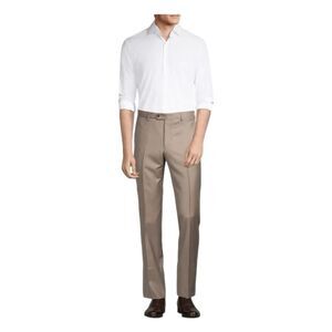 Armani Collezioni Flat Front Dress Pants in Taupe, Cut from fine 100% virgin wool. These Trousers offer a flat front and drape elegantly. garment has perfect symmetry. Build upon your style with this taupe, trendy cut. They have Belt loops, Button and slide closure, Zip fly, Two front pockets, Back button welt pockets and are fully Lined. Dry clean only