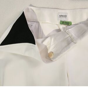 Keywords: armani collezioni pants, white dress pants, slim fit trousers, designer workwear, formal pants, white slacks, professional attire, black detail pants, italian designer, business wear