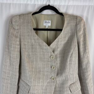 Armani Collezioni Womens 6 Tweed Linen Blend Blazer Cream Black Classic,Career