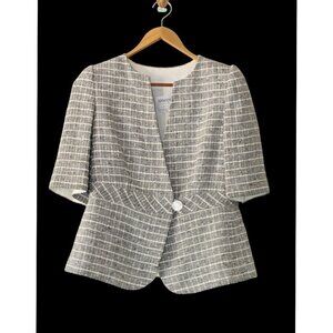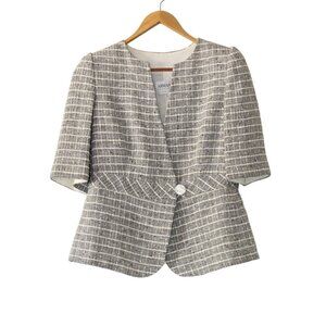 Armani Collezioni Women's Plaid Blazer Mother pearl button Size 4 Grey Top Italy