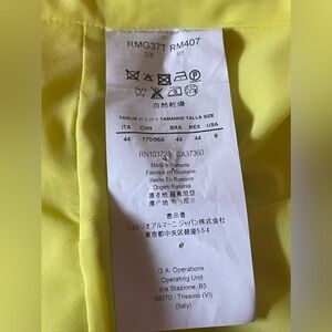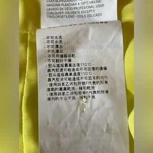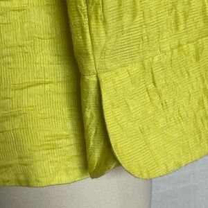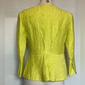 How stunning is this?! Lightweight. Lined. “Tulip” cuff (see phot). Great yellow/lime color jacket is great with a white tee or blouse and trousers or jeans! Definitely will brighten your mood and the entire room!