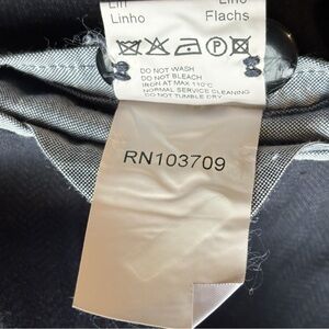 Armani Collezioni, established in 1979, is a sub-label of Giorgio Armani, offering high-quality business wear. Armani created the unstructured jacket in the mid-1970s, which contrasted with the rigid menswear of the time. These blazers are made with fine tailoring and fabrics. They are designed to be versatile and can be worn for work, leisure, or special events. This jacket was made in Romania.