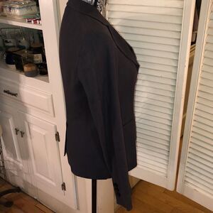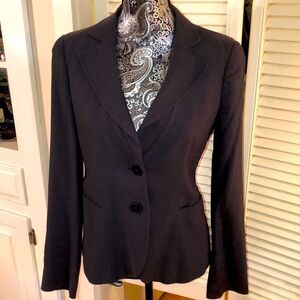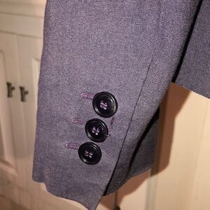 Bought by me at Armani Emporio Beverly Hills. Length is 24” inseam arm is 18”. Cotton rayon viscose. Light sewn in shoulder pads provide attractive framing. Italian fit. Euro 42 is US 6. Purple can be a neutral!