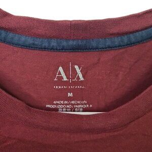 Armani Exchange 91 Stencil Logo Graphic Tee Maroon Men Cotton Crewneck Size M