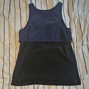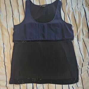 Armani Exchange AX Blue black Flowy Evening Tank Blouse Sequins Sexy Elegant EUC