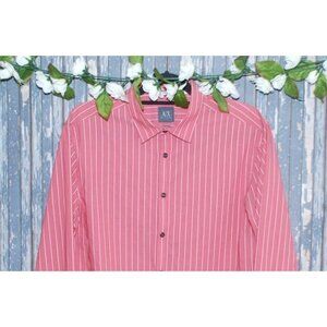 Armani Exchange A/X Men's Salmon Shirt Size L Snap Button Up LS Collar Striped