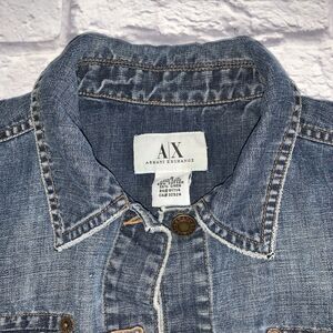Armani Exchange A|X Small Denim Jacket Distressed Blue Button Up Pockets