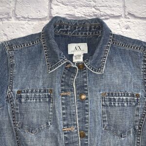 Armani Exchange A|X Small Jean Jacket Distressed Button Up Pockets Blue Denim