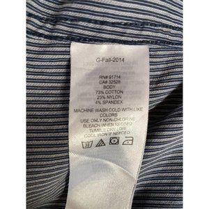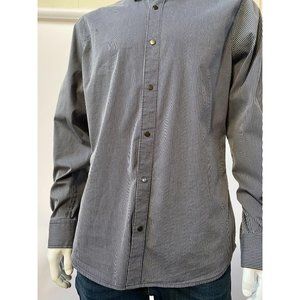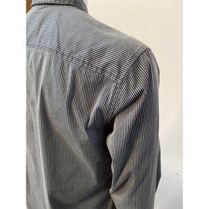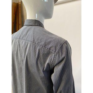 A great looking striped shirt by Armani Exchange with snap closures. A hip take on a button-down shirt. Measurements are: Armpit to armpit 23″ Shoulder to hem 32″ Shoulder to shoulder 19″ and a sleeve length of 25″