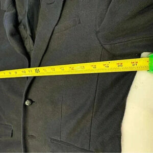 The jacket is single breasted with a two button close. It has a single vent back. Front pockets. See photos for measurements
