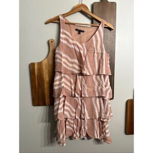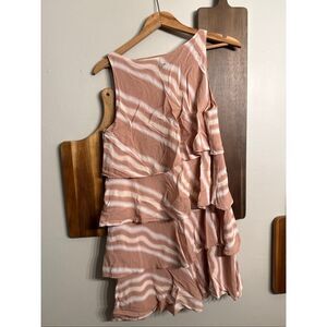 Armani Exchange Beige Wave Print Sleeveless Tiered Mini Trapeze Dress Size 2