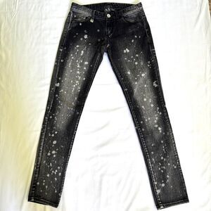 Armani Exchange Black Acid Washed Splattered Low Rise Stretch Denim Size 4